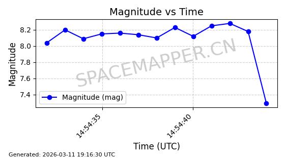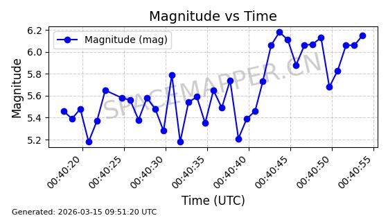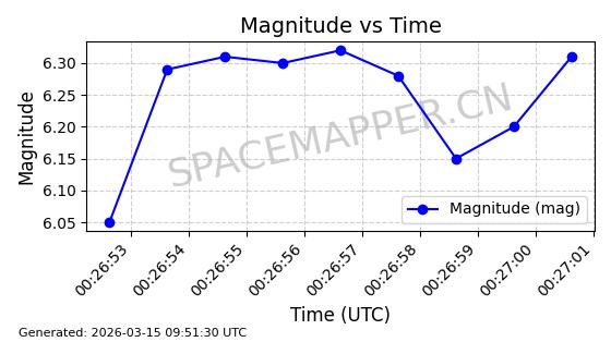 | STARLINK-11311 | 61253 | 61253 | 2024-09-25 同日期轨道 2024-175L 同批次轨道 | 在轨 | 92分钟 | 53.1570 | 359.167 | 360.293 | 0.0000835 | 2026-03-13 07:37:20 | ||