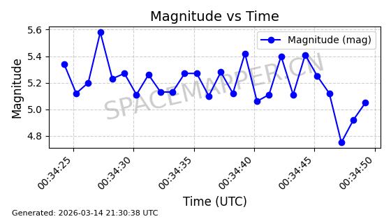 | STARLINK-32474 | 61260 | 61260 | 2024-09-25 同日期轨道 2024-175T 同批次轨道 | 在轨 | 94分钟 | 53.1593 | 472.915 | 477.617 | 0.0003429 | 2026-03-13 16:01:54 | ||