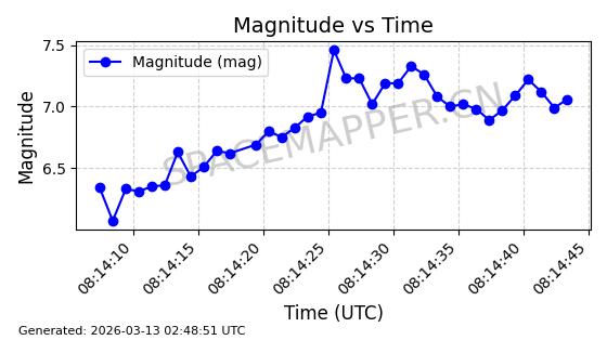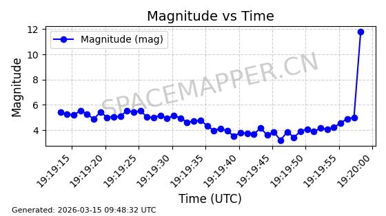 | STARLINK-32432 | 61257 | 61257 | 2024-09-25 同日期轨道 2024-175Q 同批次轨道 | 在轨 | 94分钟 | 53.1613 | 474.356 | 476.002 | 0.0001200 | 2026-03-13 06:51:13 | ||