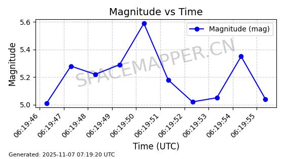 | STARLINK-11747 | 64322 | 64322 | 2025-06-10 同日期轨道 2025-124F 同批次轨道 | 在轨 | 92分钟 | 42.9981 | 355.529 | 357.371 | 0.0001367 | 2025-11-06 00:29:48 | ![]() | |