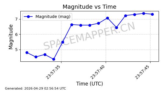 | STARLINK-11748 | 64373 | 64373 | 2025-06-13 同日期轨道 2025-127D 同批次轨道 | 在轨 | 92分钟 | 42.9971 | 354.961 | 357.941 | 0.0002211 | 2026-04-29 06:40:40 | ![]() | |