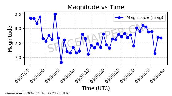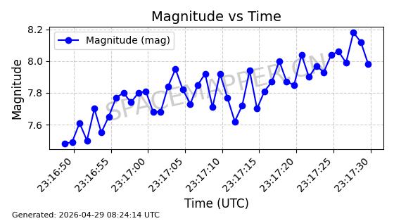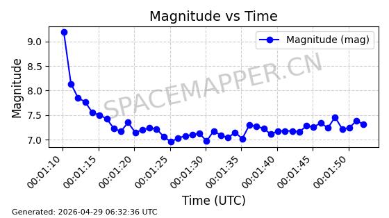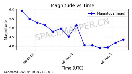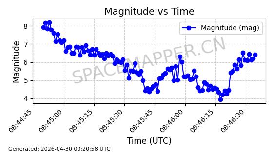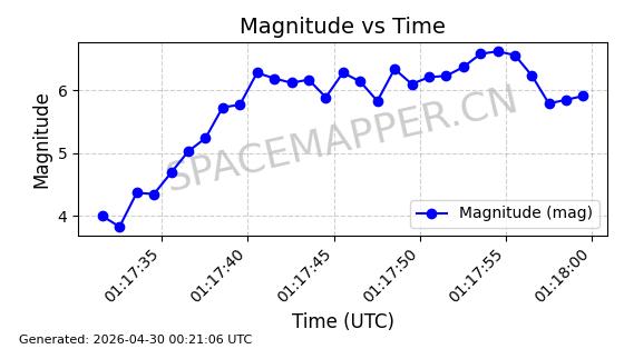 在轨 94分钟 42.9999 482.044 484.028 0.0001445 2026-04-29