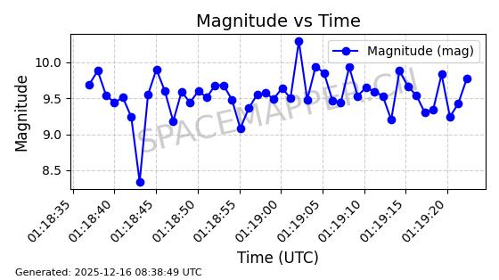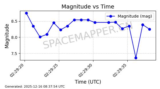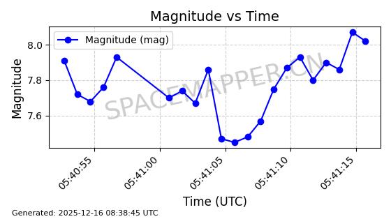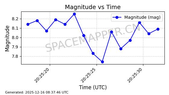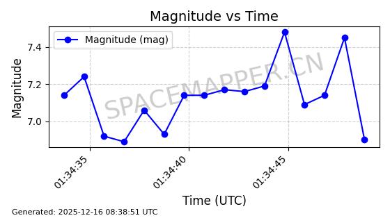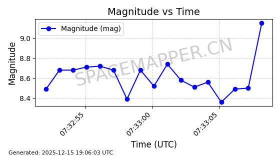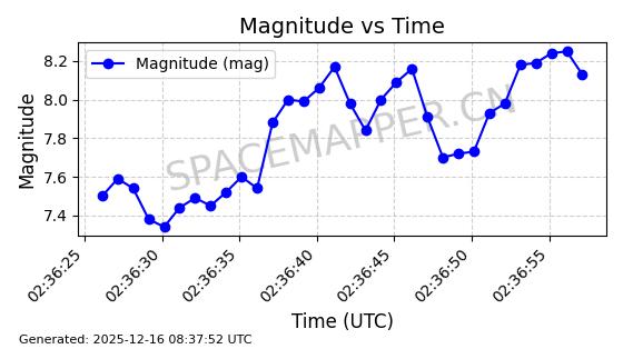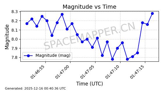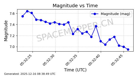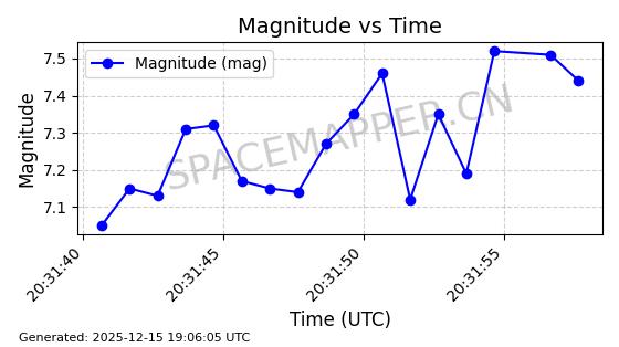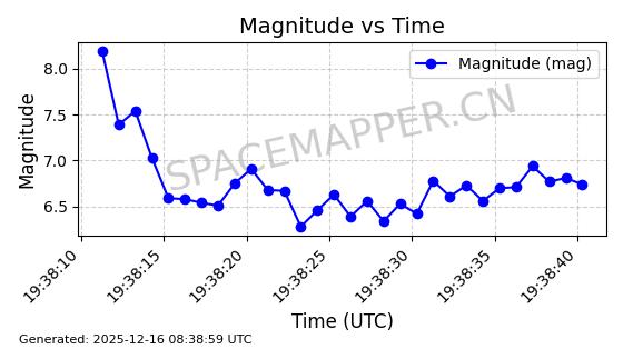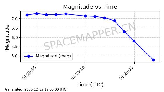 | STARLINK-1671 | 46554 | 46554 | 2020-10-06 同日期轨道 2020-070Y 同批次轨道 | 已陨落 | 87分钟 | 53.0141 | 143.441 | 153.873 | 0.0007991 | 2025-02-20 23:26:21 | ||