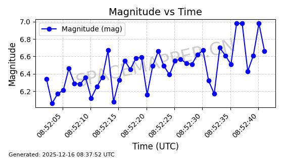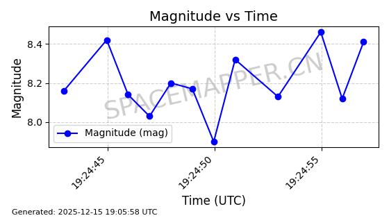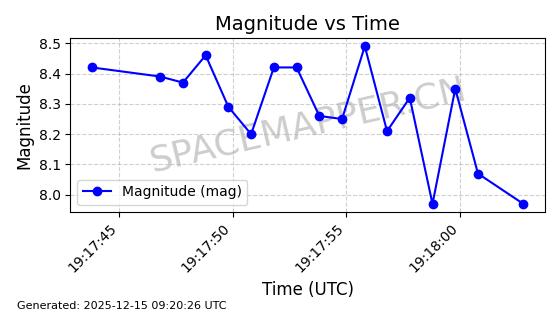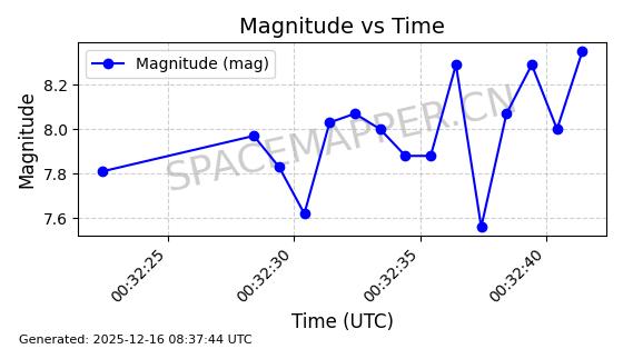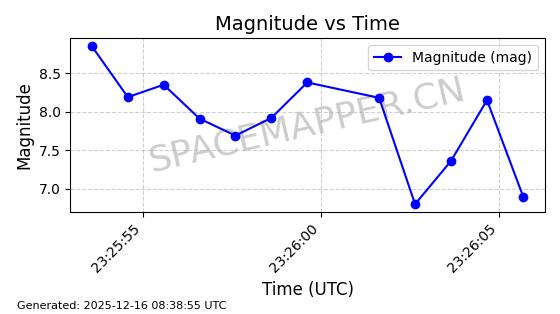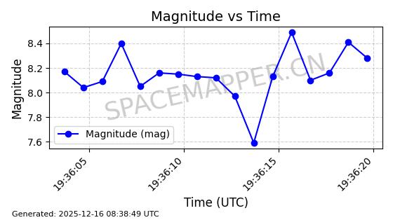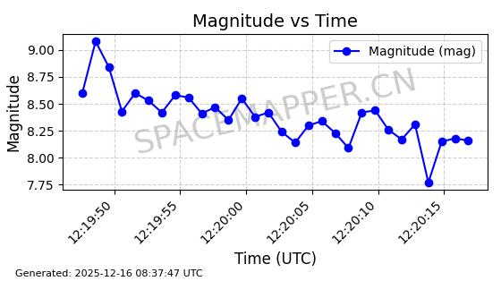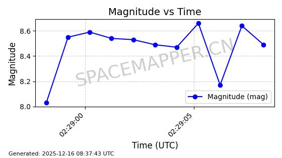 | STARLINK-1618 | 46125 | 46125 | 2020-08-18 同日期轨道 2020-057J 同批次轨道 | 已陨落 | 88分钟 | 53.0242 | 169.844 | 176.624 | 0.0005174 | 2025-09-17 01:11:04 | ||
