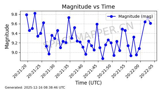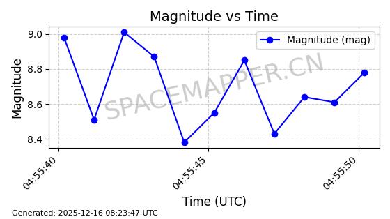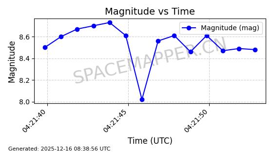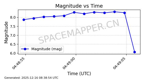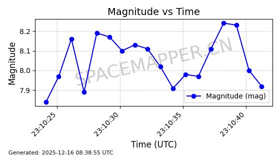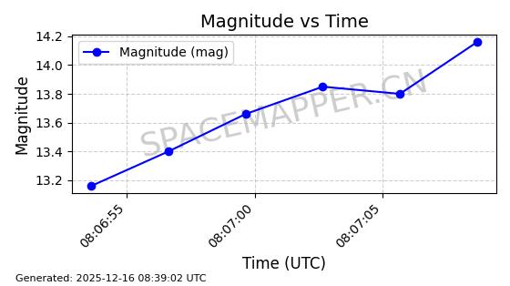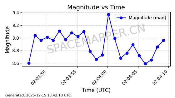 | STARLINK-1694 | 46544 | 46544 | 2020-10-06 同日期轨道 2020-070N 同批次轨道 | 已陨落 | 87分钟 | 53.0259 | 138.522 | 145.516 | 0.0005363 | 2025-05-08 04:31:32 | ||