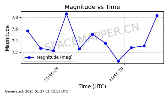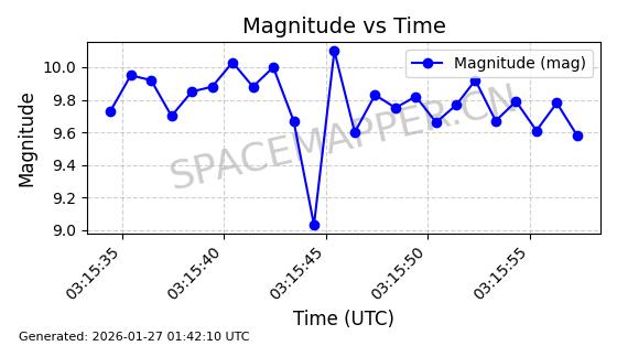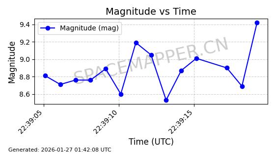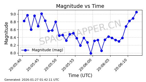 | TIANQI 17 | 64059 | 64059 | 2025-05-19 同日期轨道 2025-105B 同批次轨道 | 在轨 | 103分钟 | 44.9805 | 889.709 | 904.141 | 0.0009918 | 2026-01-27 01:06:05 | ![]() | |