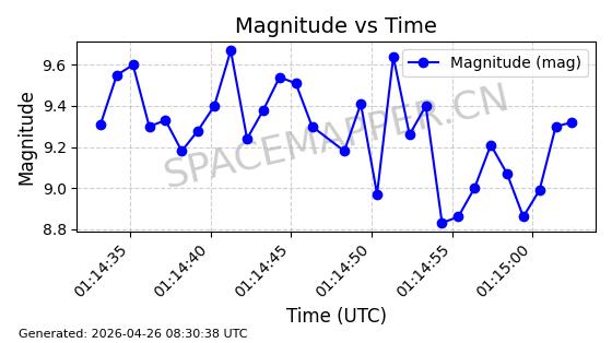 | TIANQI 26 | 59910 | 59910 | 2024-05-29 同日期轨道 2024-102B 同批次轨道 | 在轨 | 103分钟 | 44.9717 | 889.519 | 903.853 | 0.0009851 | 2026-04-28 07:27:04 | ||