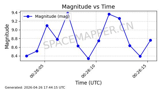 | TIANQI 17 | 64059 | 64059 | 2025-05-19 同日期轨道 2025-105B 同批次轨道 | 在轨 | 103分钟 | 44.9798 | 888.976 | 904.582 | 0.0010725 | 2026-04-28 07:17:18 | ![]() | |