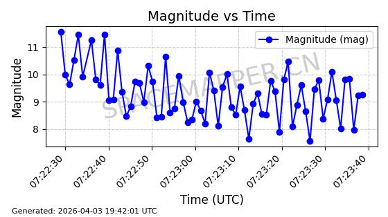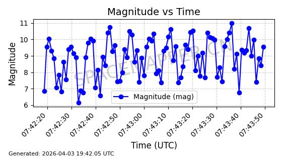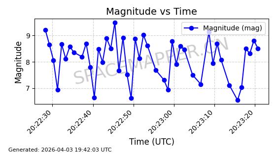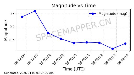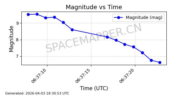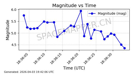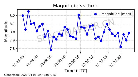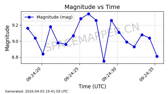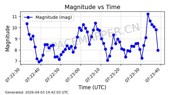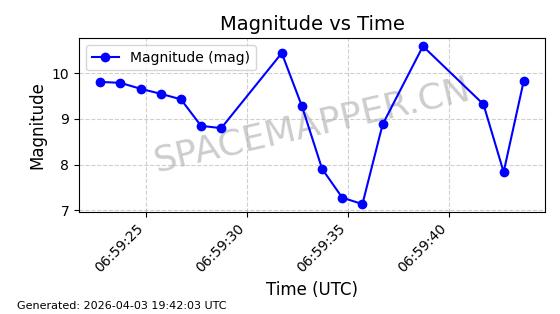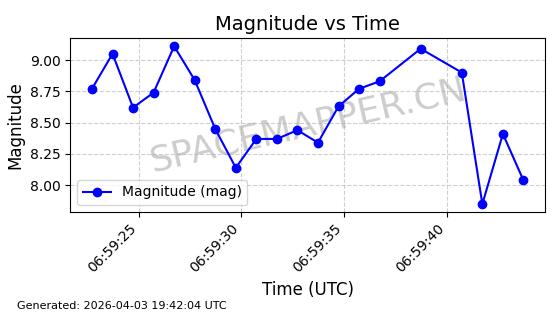 | QIANFAN-73 | 63159 | 63159 | 2025-03-11 同日期轨道 2025-046A 同批次轨道 | 在轨 | 107分钟 | 88.9707 | 1057.082 | 1080.094 | 0.0015451 | 2026-04-03 05:15:38 | ![]() | |