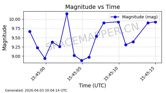 | STARLINK-11090 | 59422 | 59422 | 2024-04-07 同日期轨道 2024-065B 同批次轨道 | 在轨 | 92分钟 | 53.1597 | 358.874 | 360.614 | 0.0001291 | 2026-04-03 01:48:54 | ||