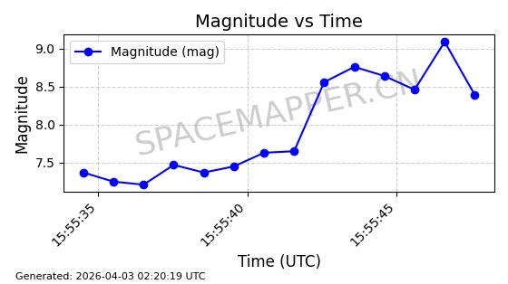 | 卫星名称 | AOE ID | NORAD ID | 发射日期 国际编号 | 在轨状态 | 轨道周期 | 轨道倾角 (度) | 近地点 (Km) | 远地点 (Km) | 偏心率 | 更新时间 (UTC) | 近期光变曲线 | 服务 |