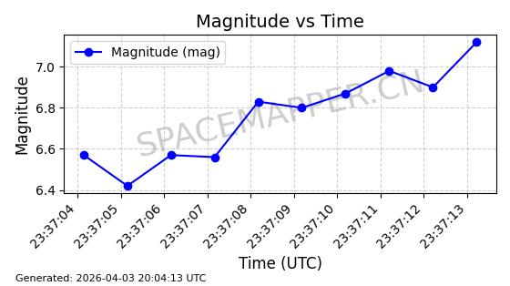 | STARLINK-11094 | 59714 | 59714 | 2024-05-10 同日期轨道 2024-088G 同批次轨道 | 在轨 | 92分钟 | 53.1586 | 358.822 | 360.57 | 0.0001296 | 2026-04-03 00:32:09 | ||