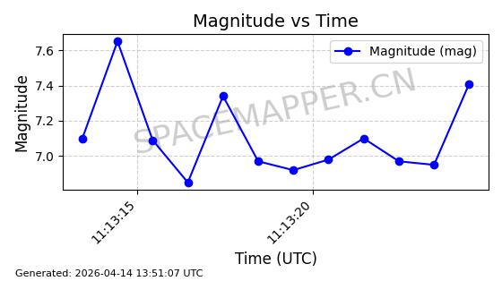 | STARLINK-32188 | 60365 | 60365 | 2024-08-04 同日期轨道 2024-138L 同批次轨道 | 在轨 | 94分钟 | 53.1594 | 474.709 | 475.707 | 0.0000728 | 2026-04-13 02:07:40 | ||