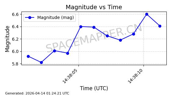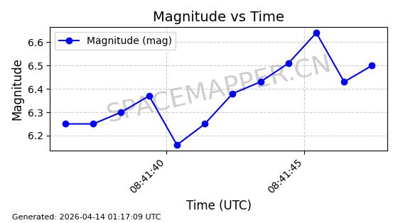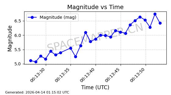 | STARLINK-32262 | 60938 | 60938 | 2024-08-31 同日期轨道 2024-155Q 同批次轨道 | 在轨 | 92分钟 | 53.1475 | 361.856 | 371.314 | 0.0007010 | 2026-04-12 23:28:34 | ||