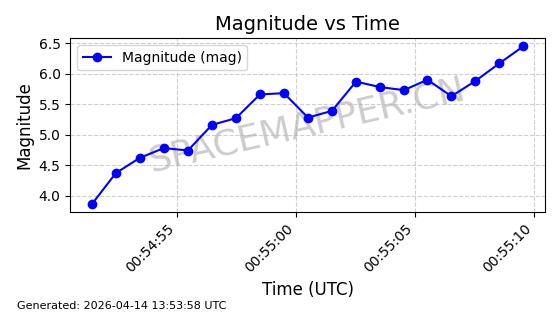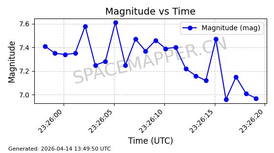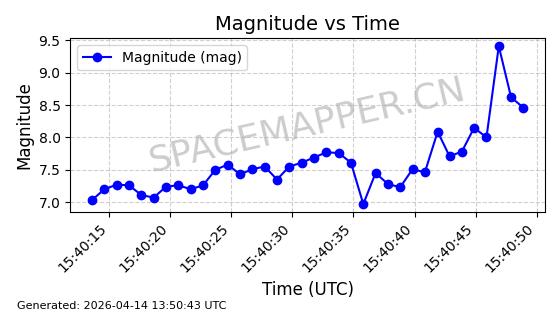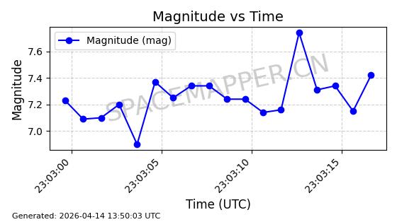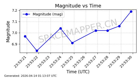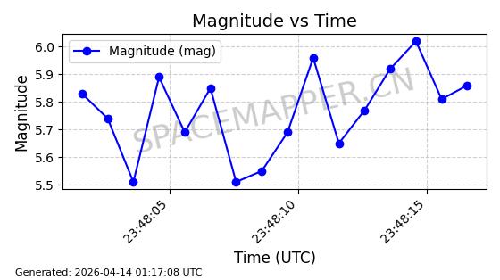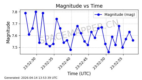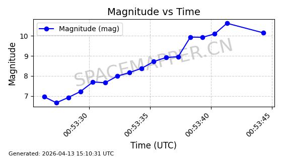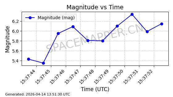 | STARLINK-32203 | 60331 | 60331 | 2024-08-02 同日期轨道 2024-136C 同批次轨道 | 在轨 | 94分钟 | 53.1605 | 474.748 | 475.79 | 0.0000759 | 2026-04-13 07:01:45 | ||