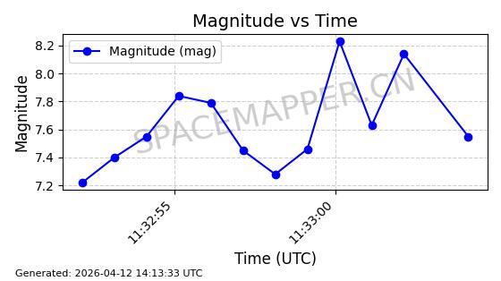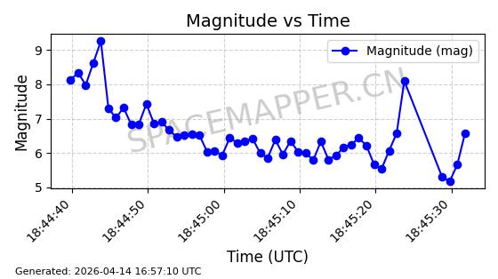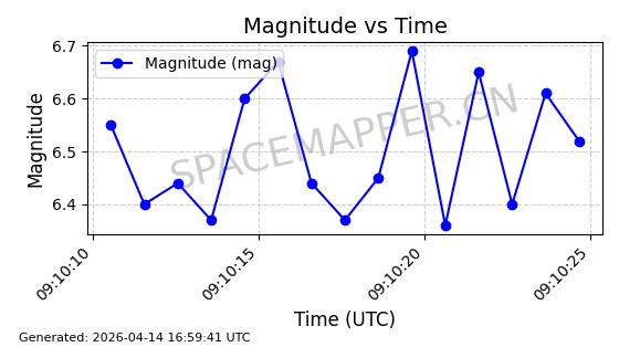 | STARLINK-32324 | 61863 | 61863 | 2024-11-07 同日期轨道 2024-202U 同批次轨道 | 在轨 | 94分钟 | 43.0077 | 482.495 | 483.645 | 0.0000837 | 2026-04-13 04:53:46 | ||