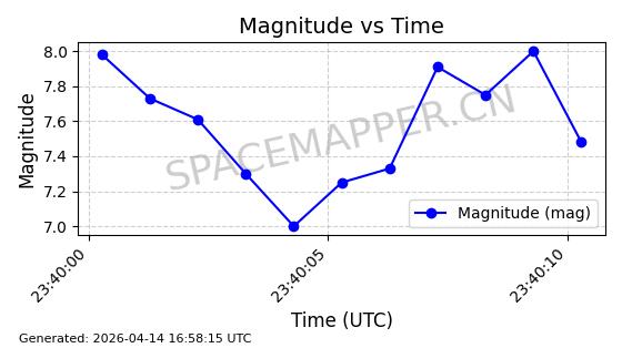 | 卫星名称 | AOE ID | NORAD ID | 发射日期 国际编号 | 在轨状态 | 轨道周期 | 轨道倾角 (度) | 近地点 (Km) | 远地点 (Km) | 偏心率 | 更新时间 (UTC) | 近期光变曲线 | 服务 |