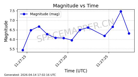 | STARLINK-32361 | 61933 | 61933 | 2024-11-11 同日期轨道 2024-207X 同批次轨道 | 在轨 | 94分钟 | 43.0017 | 482.675 | 483.377 | 0.0000511 | 2026-04-13 05:59:51 | ||