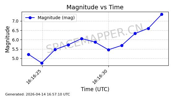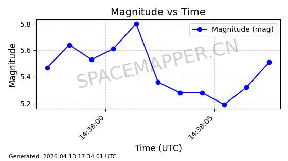 | STARLINK-32304 | 60738 | 60738 | 2024-08-28 同日期轨道 2024-152U 同批次轨道 | 在轨 | 94分钟 | 53.1609 | 474.368 | 476.1 | 0.0001263 | 2026-04-13 06:42:00 | ||