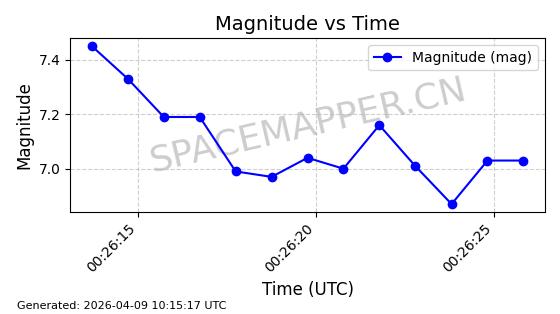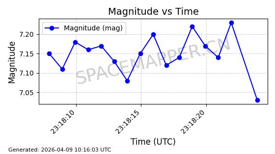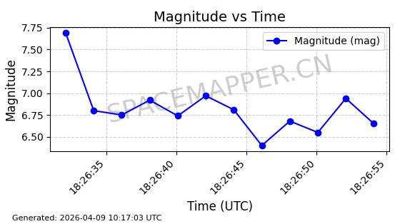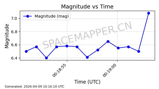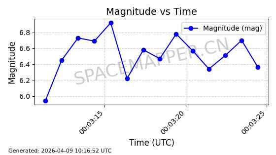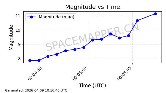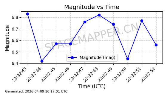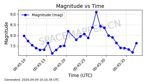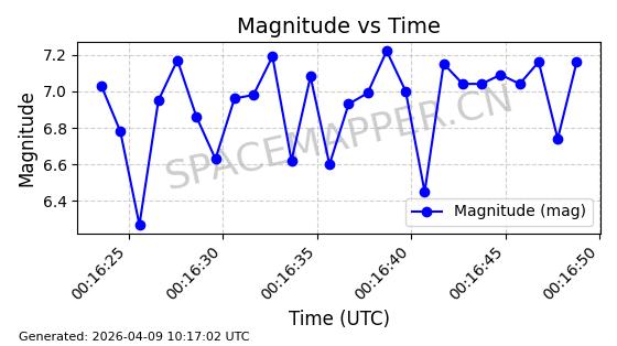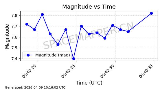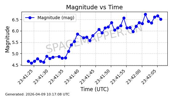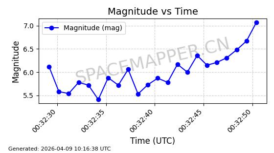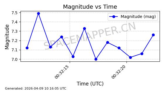 | STARLINK-31731 | 59498 | 59498 | 2024-04-13 同日期轨道 2024-071Q 同批次轨道 | 在轨 | 94分钟 | 43.0036 | 482.218 | 484.024 | 0.0001315 | 2026-04-08 06:31:28 | ||