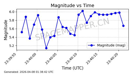 | STARLINK-31622 | 59456 | 59456 | 2024-04-10 同日期轨道 2024-068B 同批次轨道 | 在轨 | 94分钟 | 43.0065 | 482.413 | 483.629 | 0.0000886 | 2026-04-08 07:57:52 | ||