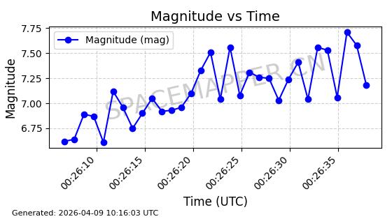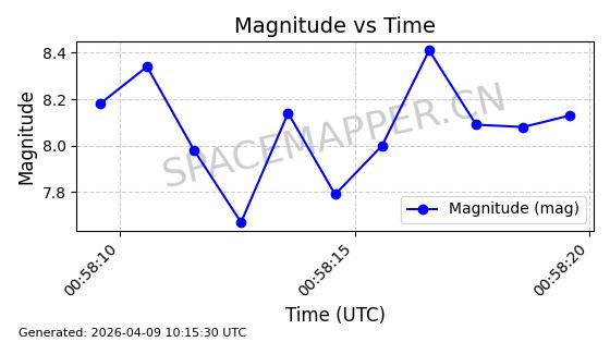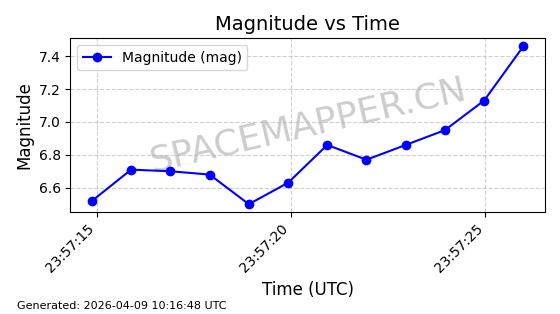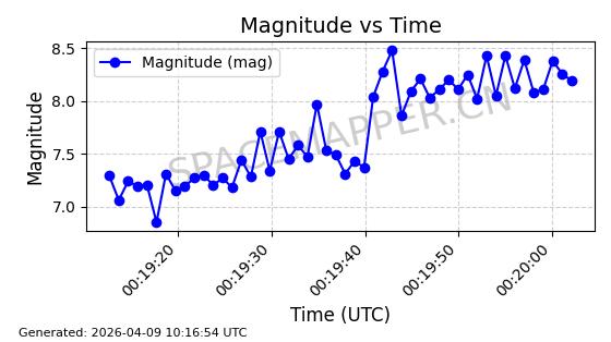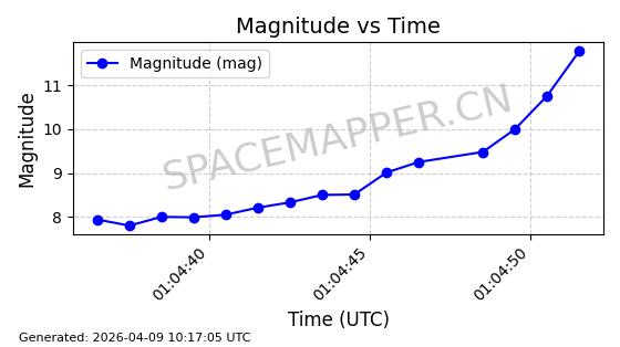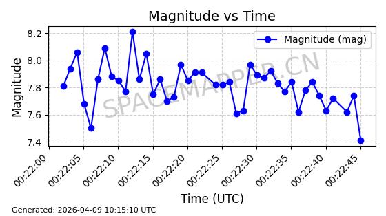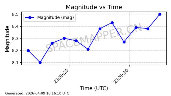| STARLINK-31509 | 59533 | 59533 | 2024-04-17 同日期轨道 2024-073Y 同批次轨道 | 在轨 | 94分钟 | 42.9986 | 482.38 | 483.688 | 0.0000953 | 2026-04-08 04:41:06 | ||