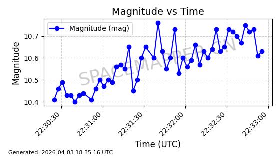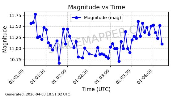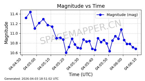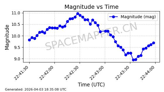 | SIRIUS 3 | 26626 | 26626 | 2000-11-30 同日期轨道 2000-077A 同批次轨道 | 在轨 | 907分钟 | 59.7647 | 24632.022 | 24673.27 | 0.0006646 | 2026-04-01 18:10:59 | ||