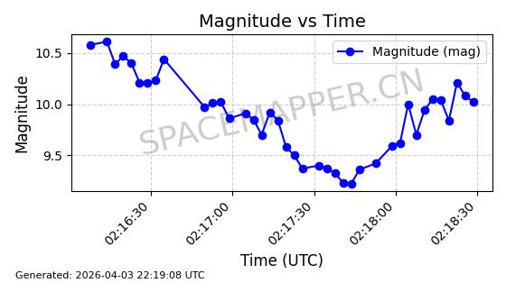| RADUGA 1-1 | 20083 | 20083 | 1989-06-21 同日期轨道 1989-048A 同批次轨道 | 在轨 | 1459分钟 | 12.8045 | 36154.344 | 36306.944 | 0.0017907 | 2026-04-02 08:06:39 | ||