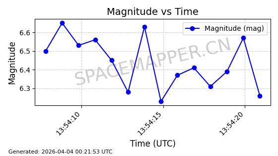 | 卫星名称 | AOE ID | NORAD ID | 发射日期 国际编号 | 在轨状态 | 轨道周期 | 轨道倾角 (度) | 近地点 (Km) | 远地点 (Km) | 偏心率 | 更新时间 (UTC) | 近期光变曲线 | 服务 |