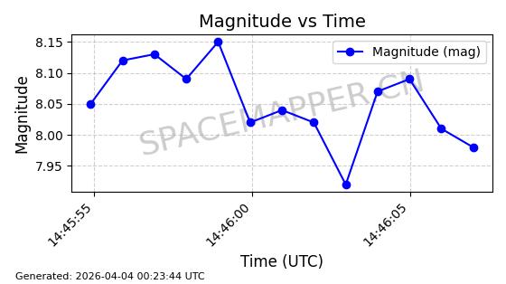 | GEESAT 4-03 | 65121 | 65121 | 2025-08-08 同日期轨道 2025-170C 同批次轨道 | 在轨 | 97分钟 | 49.9907 | 602.99 | 631.74 | 0.0020548 | 2026-04-03 07:17:03 | ![]() | |