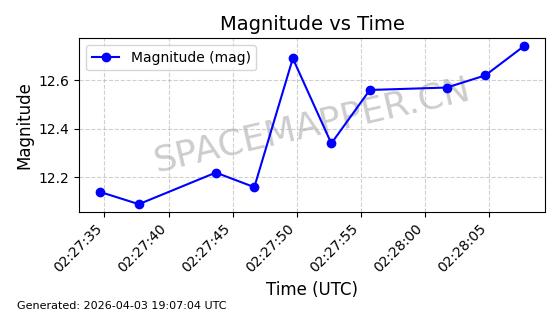 | 卫星名称 | AOE ID | NORAD ID | 发射日期 国际编号 | 在轨状态 | 轨道周期 | 轨道倾角 (度) | 近地点 (Km) | 远地点 (Km) | 偏心率 | 更新时间 (UTC) | 近期光变曲线 | 服务 |