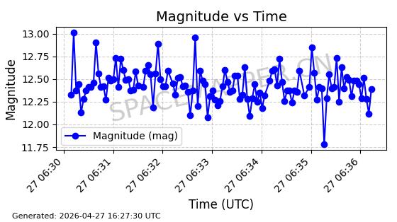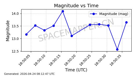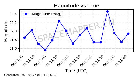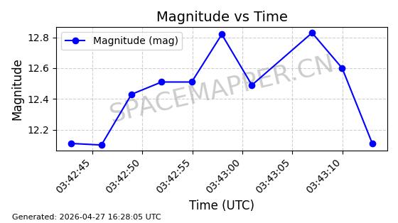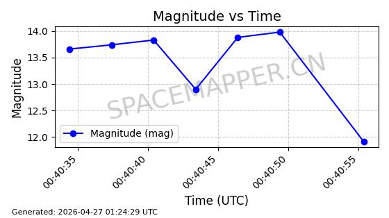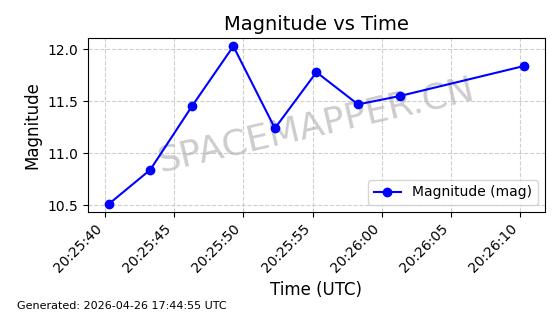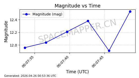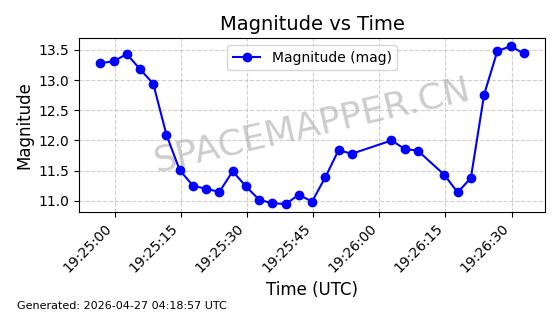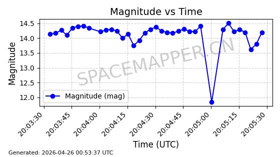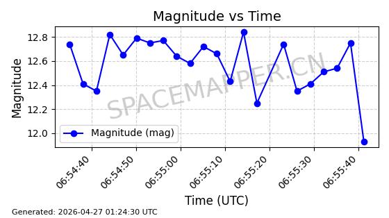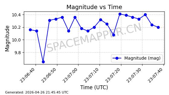 | BEIDOU-3 M25 | 58654 | 58654 | 2023-12-26 同日期轨道 2023-207A 同批次轨道 | 在轨 | 773分钟 | 55.7097 | 21515.342 | 21541.022 | 0.0004601 | 2026-04-26 18:01:45 | ||