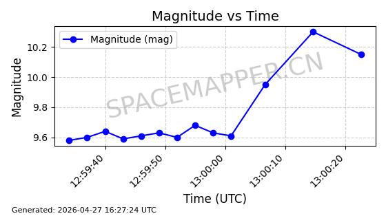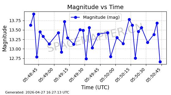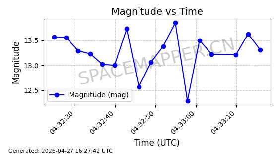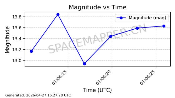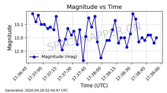 | BEIDOU 13 | 38251 | 38251 | 2012-04-29 同日期轨道 2012-018B 同批次轨道 | 在轨 | 773分钟 | 55.7028 | 21497.474 | 21558.97 | 0.0011018 | 2026-04-26 13:45:06 | ||