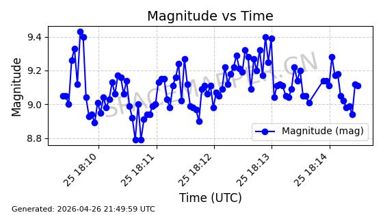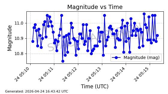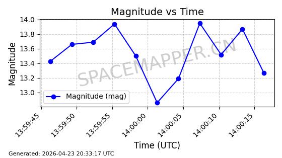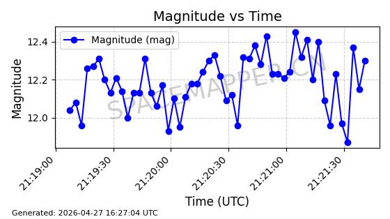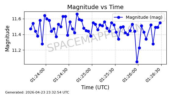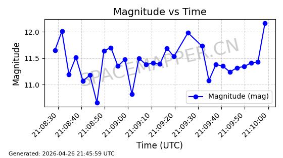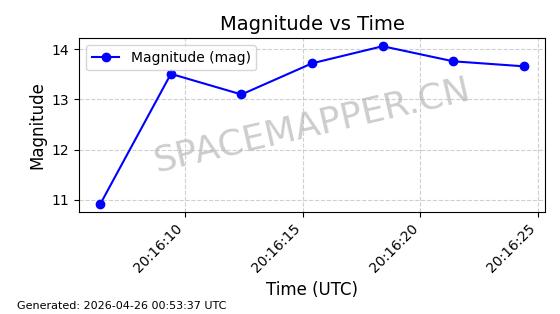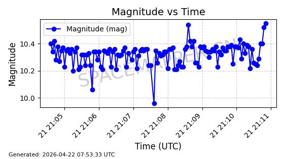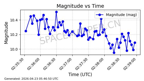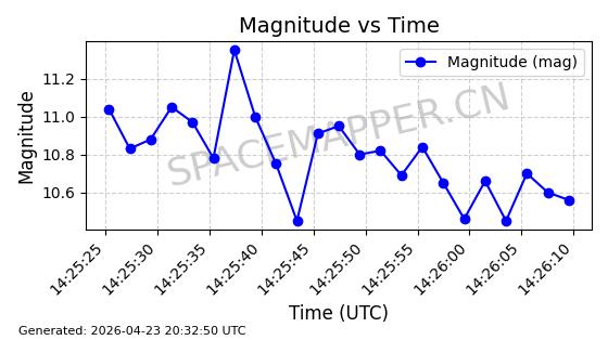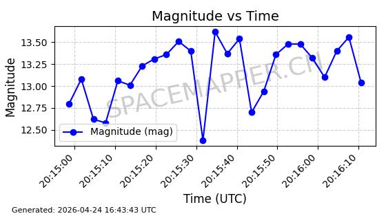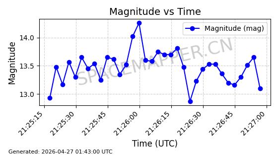 | BEIDOU 3M21 | 44793 | 44793 | 2019-11-23 同日期轨道 2019-078A 同批次轨道 | 在轨 | 773分钟 | 53.9841 | 21508.076 | 21548.848 | 0.0007305 | 2026-04-25 23:55:40 | ||