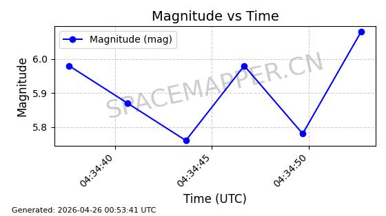 | BEIDOU 6 | 37210 | 37210 | 2010-10-31 同日期轨道 2010-057A 同批次轨道 | 在轨 | 1436分钟 | 3.5227 | 35759.833 | 35814.303 | 0.0006459 | 2026-04-27 03:48:16 | ||