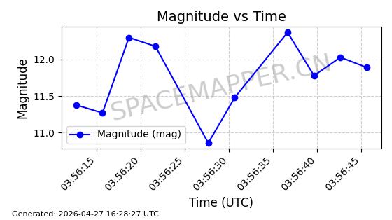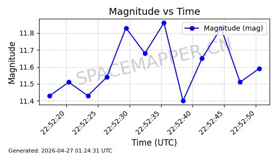 | BEIDOU 11 | 38091 | 38091 | 2012-02-24 同日期轨道 2012-008A 同批次轨道 | 在轨 | 1436分钟 | 3.4486 | 35734.488 | 35837.91 | 0.0012264 | 2026-04-27 01:49:32 | ||