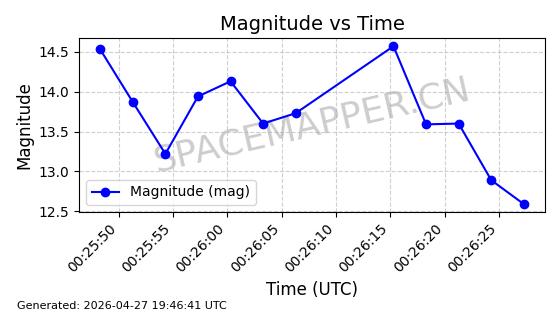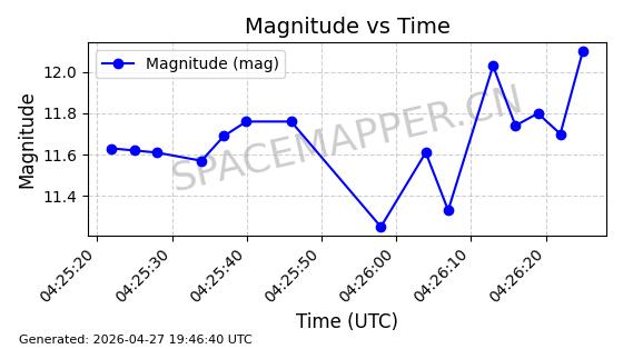 | 卫星名称 | AOE ID | NORAD ID | 发射日期 国际编号 | 在轨状态 | 轨道周期 | 轨道倾角 (度) | 近地点 (Km) | 远地点 (Km) | 偏心率 | 更新时间 (UTC) | 近期光变曲线 | 服务 |
