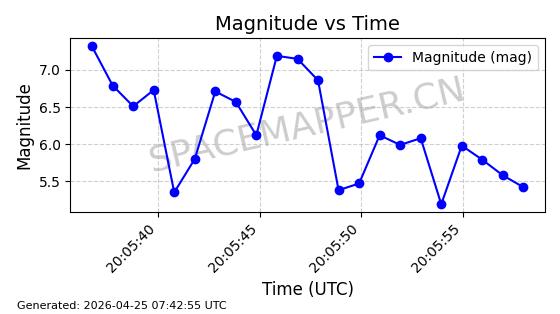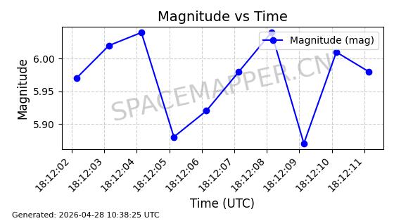 | GAOFEN 5 01A | 54640 | 54640 | 2022-12-08 同日期轨道 2022-165A 同批次轨道 | 在轨 | 99分钟 | 98.2330 | 699.082 | 702.44 | 0.0002371 | 2026-04-27 07:34:13 | ||