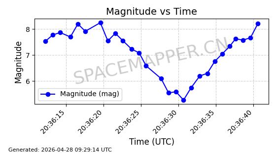 | GAOFEN 2 | 40118 | 40118 | 2014-08-19 同日期轨道 2014-049A 同批次轨道 | 在轨 | 97分钟 | 98.0142 | 620.773 | 632.571 | 0.0008421 | 2026-04-27 07:07:40 | ||