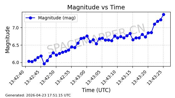| GAOFEN 13 02 | 55912 | 55912 | 2023-03-17 同日期轨道 2023-036A 同批次轨道 | 在轨 | 1436分钟 | 1.0201 | 35767.259 | 35807.325 | 0.0004751 | 2026-04-26 04:00:17 | ||