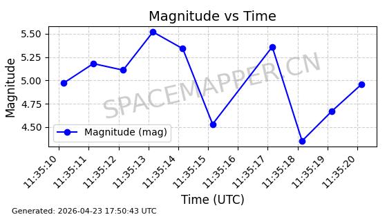 | GAOFEN 11 04 | 54818 | 54818 | 2022-12-27 同日期轨道 2022-176A 同批次轨道 | 在轨 | 95分钟 | 97.4147 | 490.481 | 501.401 | 0.0007942 | 2026-04-27 08:19:26 | ||
