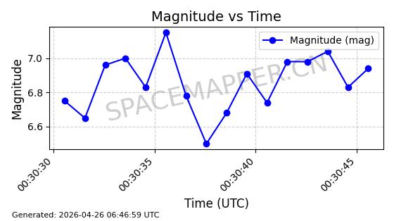 | 卫星名称 | AOE ID | NORAD ID | 发射日期 国际编号 | 在轨状态 | 轨道周期 | 轨道倾角 (度) | 近地点 (Km) | 远地点 (Km) | 偏心率 | 更新时间 (UTC) | 近期光变曲线 | 服务 |