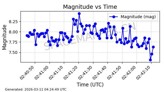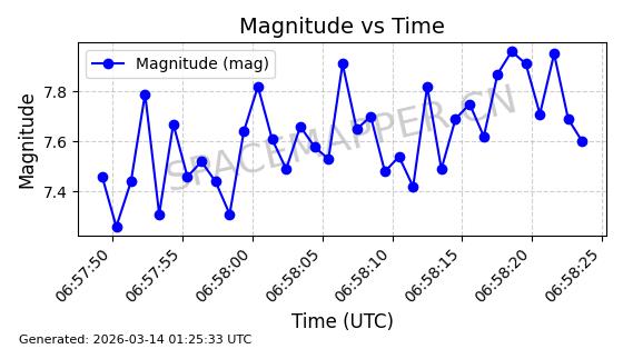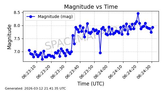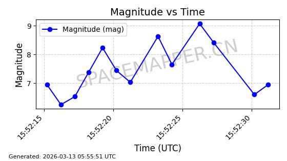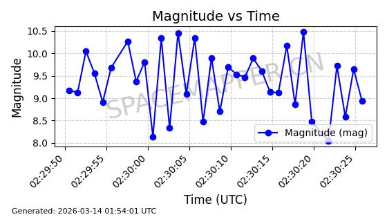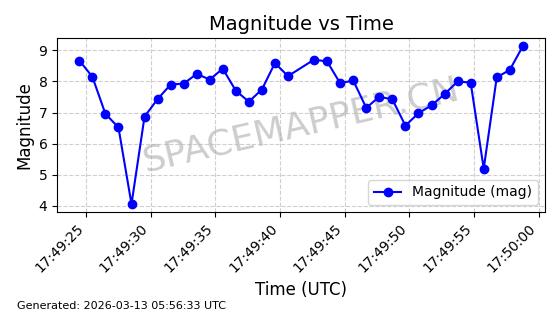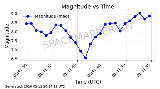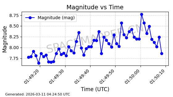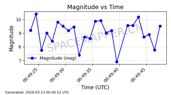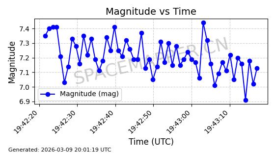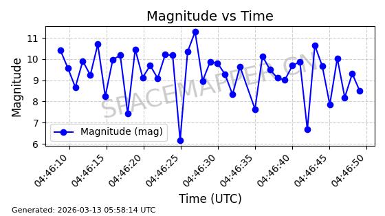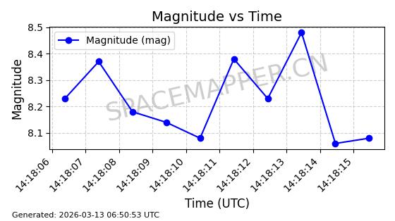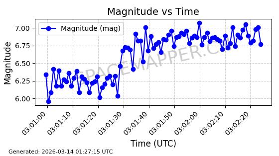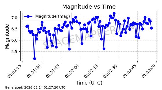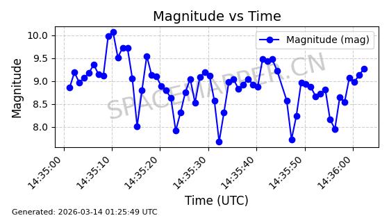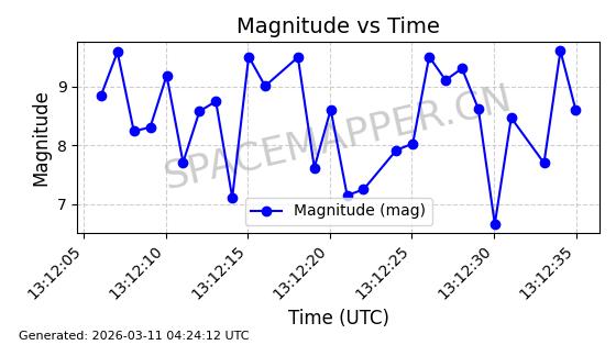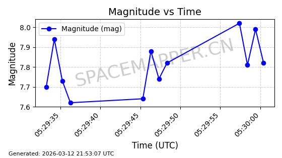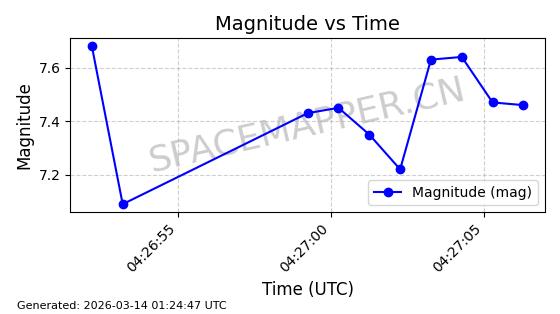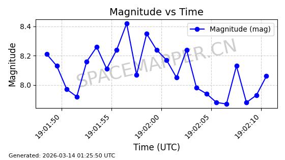 | GLOBALSTAR M025 | 25770 | 25770 | 1999-06-10 同日期轨道 1999-031A 同批次轨道 | 在轨 | 128分钟 | 51.9793 | 2045.899 | 2048.811 | 0.0001728 | 2026-03-12 23:32:54 | ||
