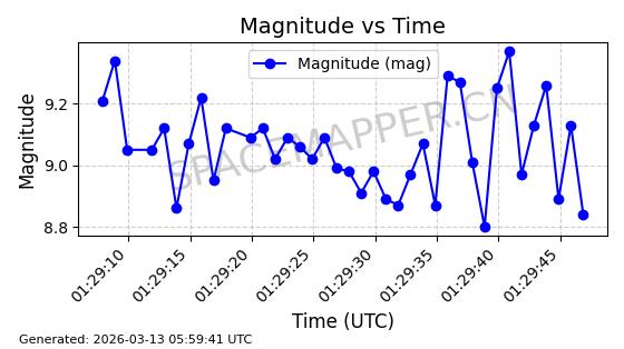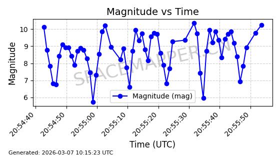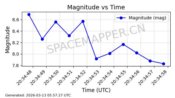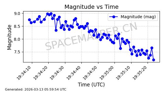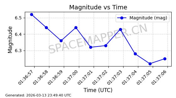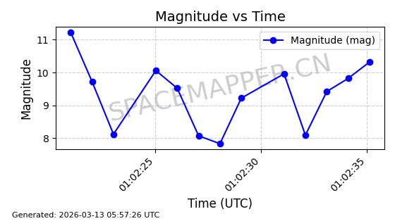 | GLOBALSTAR M077 | 37191 | 37191 | 2010-10-19 同日期轨道 2010-054D 同批次轨道 | 在轨 | 123分钟 | 51.9986 | 1825.953 | 1827.367 | 0.0000861 | 2026-03-12 23:41:42 | ||