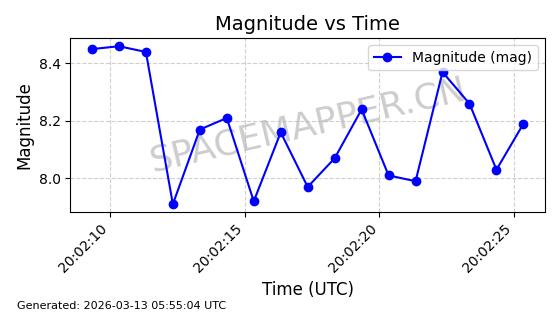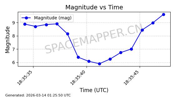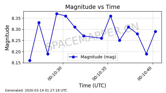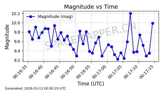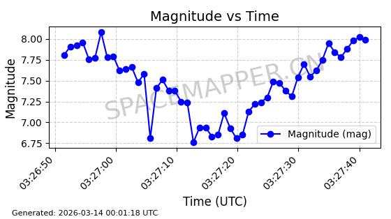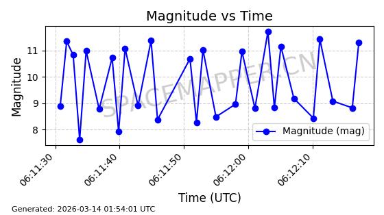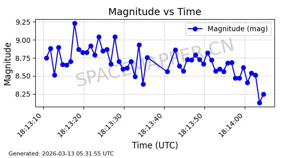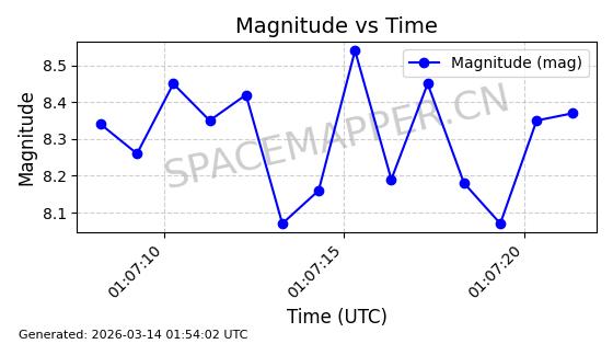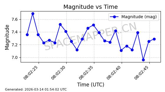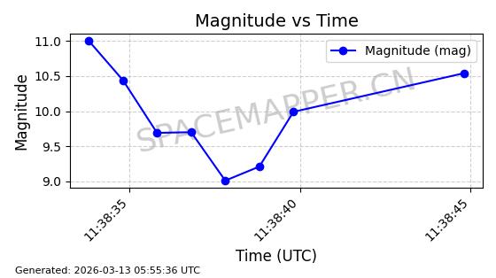 | 卫星名称 | AOE ID | NORAD ID | 发射日期 国际编号 | 在轨状态 | 轨道周期 | 轨道倾角 (度) | 近地点 (Km) | 远地点 (Km) | 偏心率 | 更新时间 (UTC) | 近期光变曲线 | 服务 |