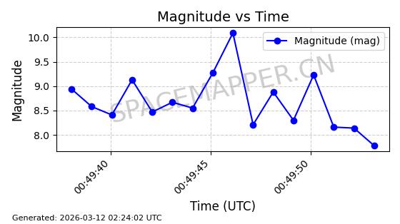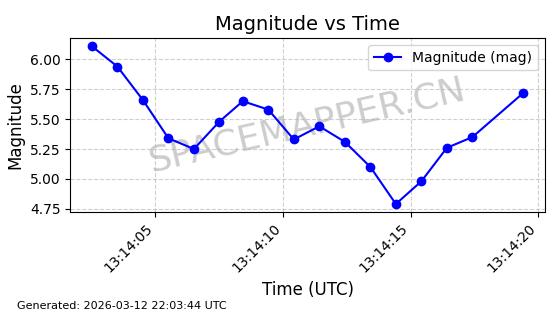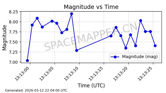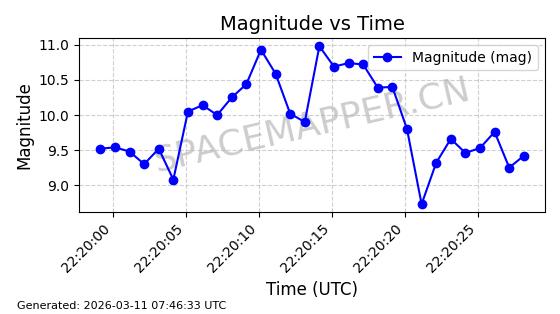 | GLOBALSTAR M022 | 25649 | 25649 | 1999-03-15 同日期轨道 1999-012A 同批次轨道 | 在轨 | 120分钟 | 52.0032 | 1667.584 | 1671.694 | 0.0002553 | 2026-03-12 23:50:32 | ||