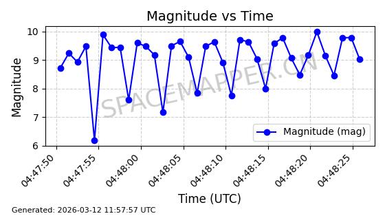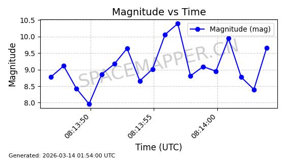 | GLOBALSTAR M079 | 37188 | 37188 | 2010-10-19 同日期轨道 2010-054A 同批次轨道 | 在轨 | 114分钟 | 52.0055 | 1413.195 | 1414.035 | 0.0000539 | 2026-03-12 20:03:40 | ||