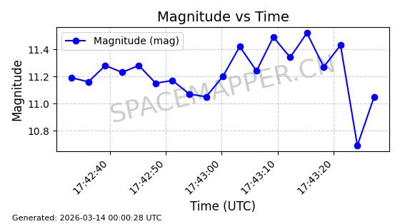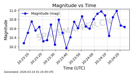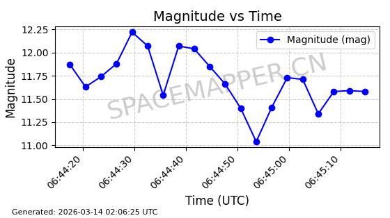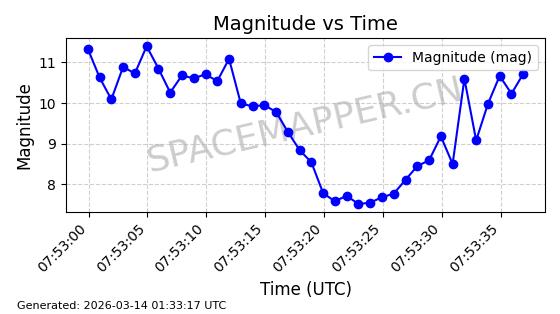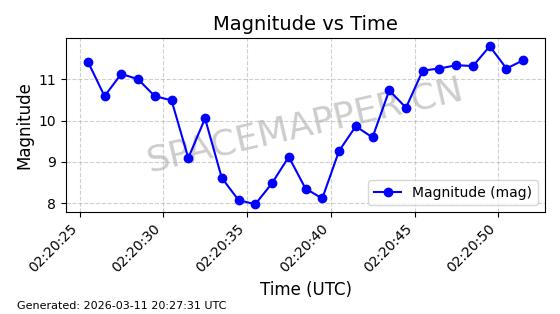 | 卫星名称 | AOE ID | NORAD ID | 发射日期 国际编号 | 在轨状态 | 轨道周期 | 轨道倾角 (度) | 近地点 (Km) | 远地点 (Km) | 偏心率 | 更新时间 (UTC) | 近期光变曲线 | 服务 |