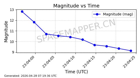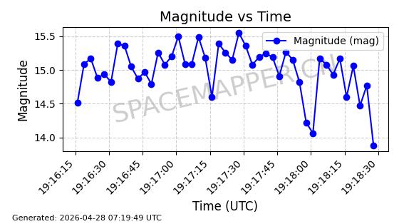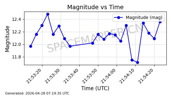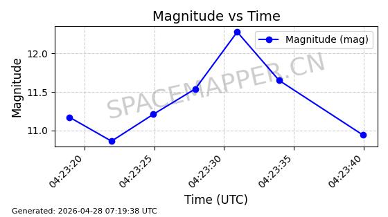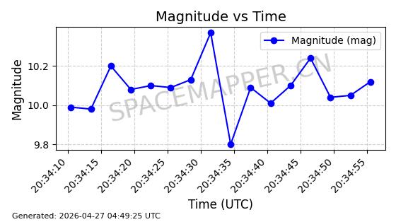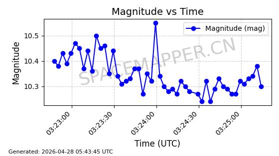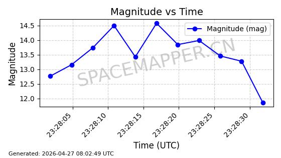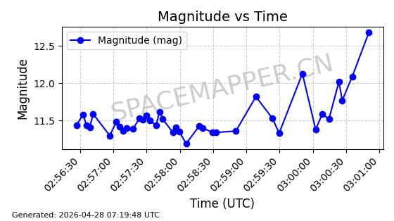 | 卫星名称 | AOE ID | NORAD ID | 发射日期 国际编号 | 在轨状态 | 轨道周期 | 轨道倾角 (度) | 近地点 (Km) | 远地点 (Km) | 偏心率 | 更新时间 (UTC) | 近期光变曲线 | 服务 |