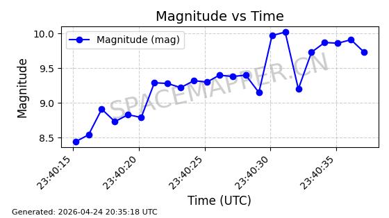 | 卫星名称 | AOE ID | NORAD ID | 发射日期 国际编号 | 在轨状态 | 轨道周期 | 轨道倾角 (度) | 近地点 (Km) | 远地点 (Km) | 偏心率 | 更新时间 (UTC) | 近期光变曲线 | 服务 |